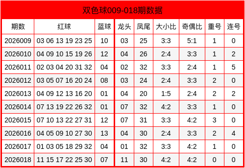 当期红球号码大小比为4:2,三区比为1:3:2,奇偶比为4:2,重号未出现,连码未出。蓝球开出小奇数07。